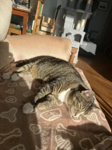 Foka przez rok w domu tymczasowym przeszła ogromną przemianę, wspierana przez opiekunów wirtualnych, dietetyczkę i lekarzy specjalistów wyszła z cukrzycy, pożegnała się z alergią i schudła ponad 3 kg! Przed samą adopcją przeszła zabieg usunięcia 8 popsutych ząbków, i 22 lutego 2026 została oficjalnie adoptowana. Warto było czekać 14 miesięcy na taki dom! Foka jest tam jedynaczką, kochaną mocno, cierpliwie i rozsądnie. Foczucha biega raźno za wędką, maszeruje po schodach w górę i w dół, obserwuje ptaki za oknem… Wygrała życie, i to takie w zdrowiu i szczęściu ❤️ i teraz trzyma kciuki, aby inne kotki znalazły równie cudowne domy.